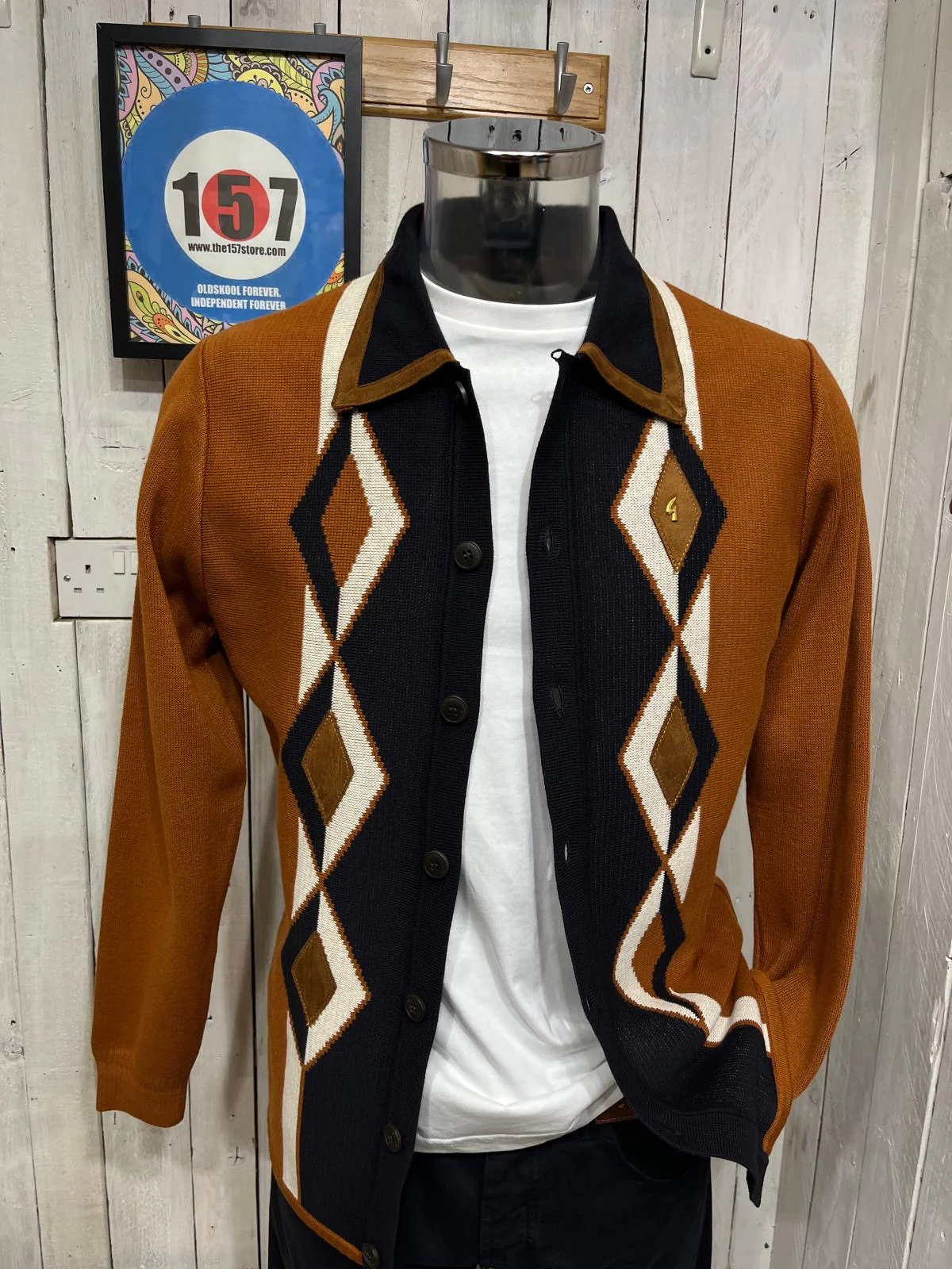 Gabicci Vintage Penfold Diamond Cardigan - Toffee